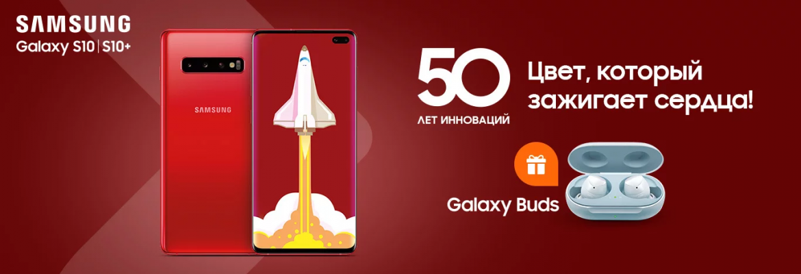 Купи Samsung Galaxy S10 або S10+ та отримай бездротові навушники Galaxy Buds. Акція проходить у період з 13 травня до 30 червня 2019 року.